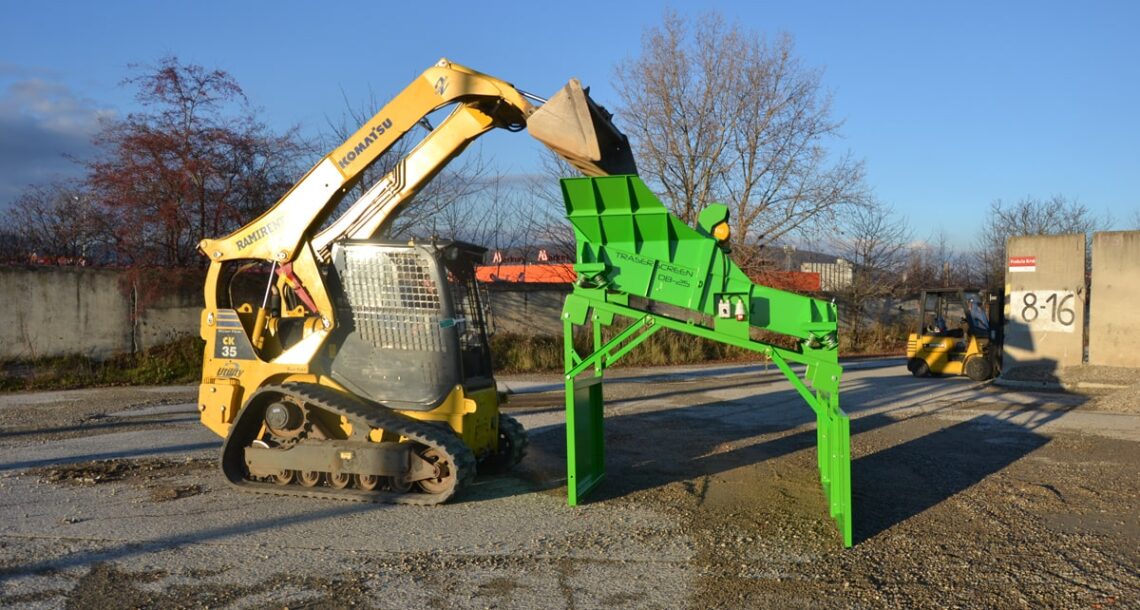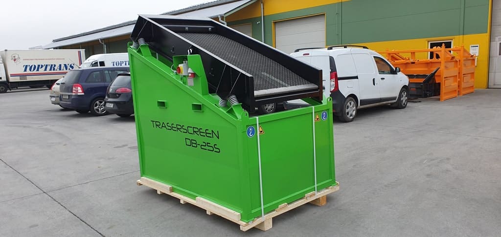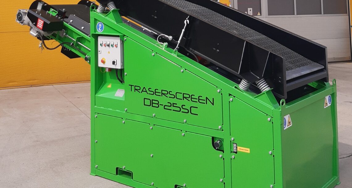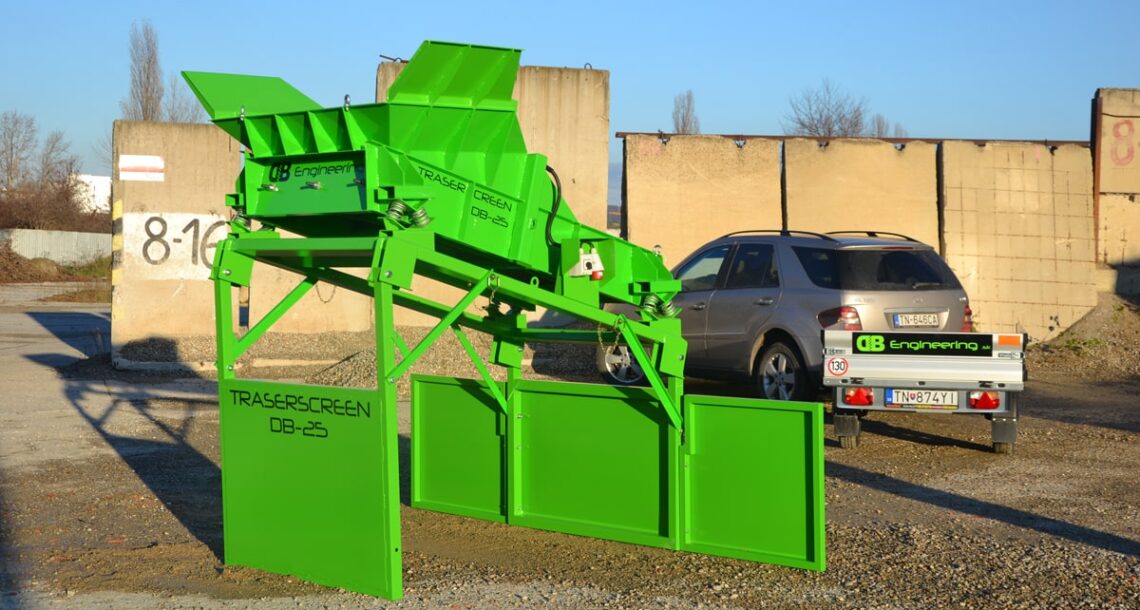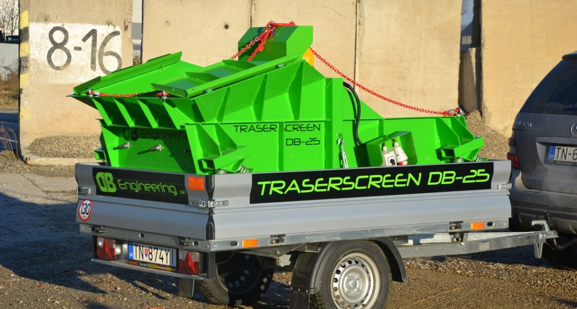 Criba Móvil para remolque Traserscreen DB-25 preparada para clasificar el 99% de todos los materiales a granel. Trabajo y mantenimiento muy económicos.