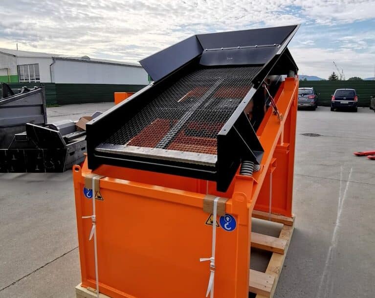 Transporte en remolque de categoría O1 (hasta 750 kg). Posibilidad de cambiar el tamaño de la fracción resultante, de forma rápida y sencilla gracias al situ duradero, arbitrariamente de 4 mm a 80 mm..