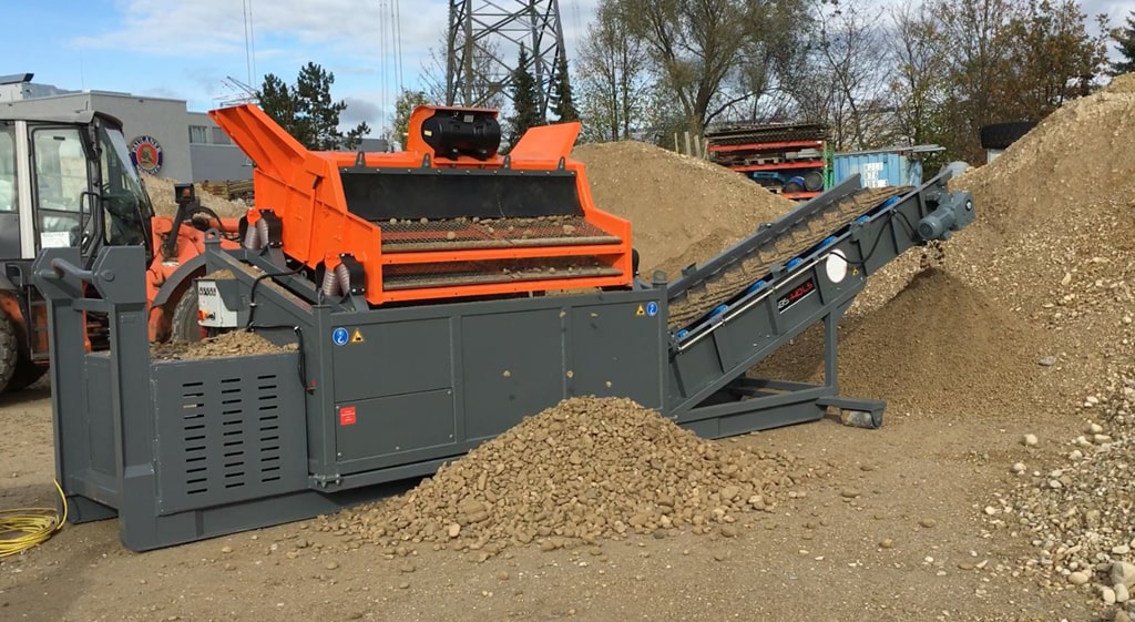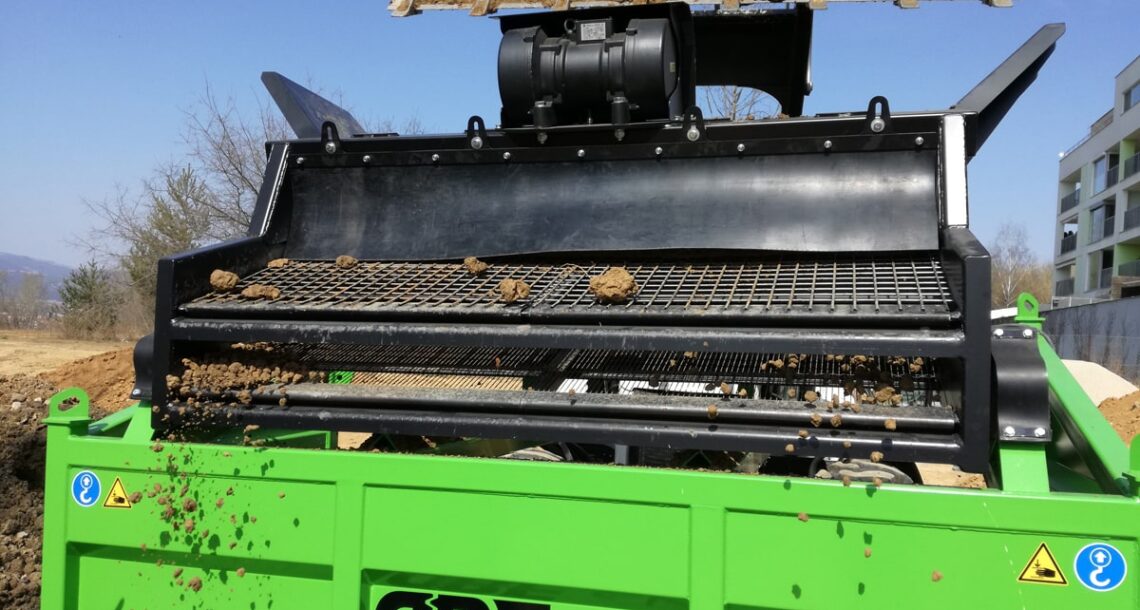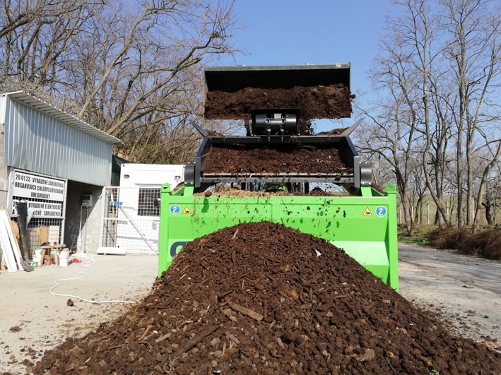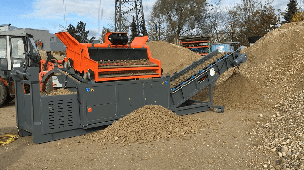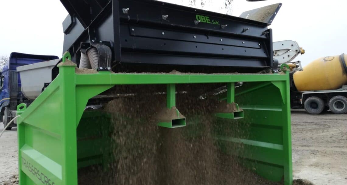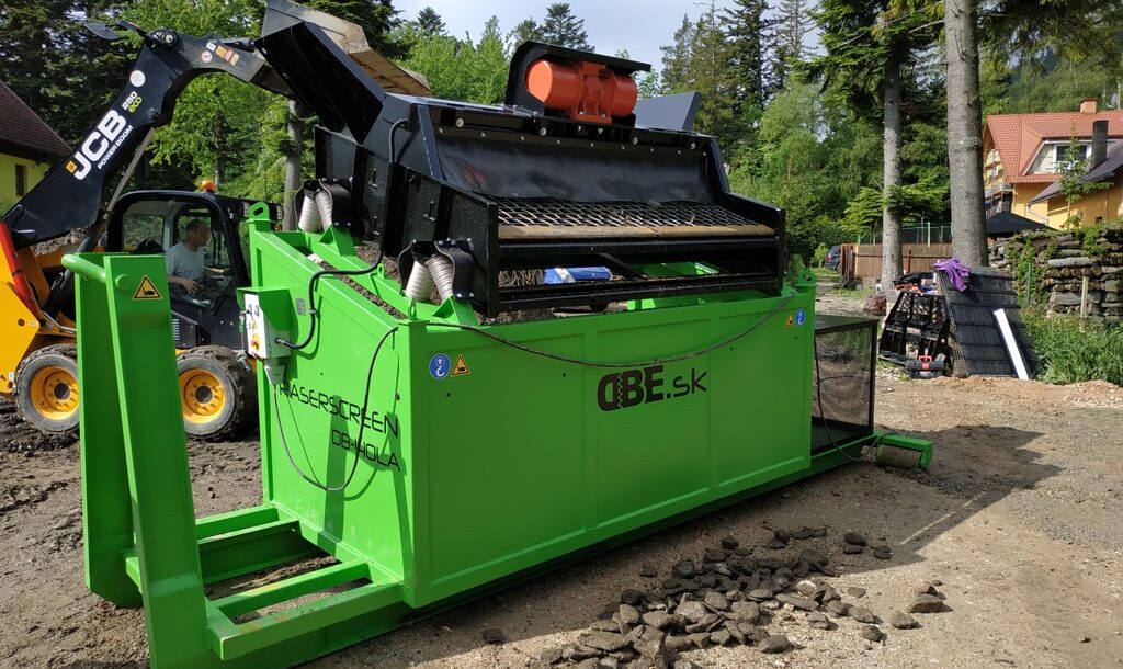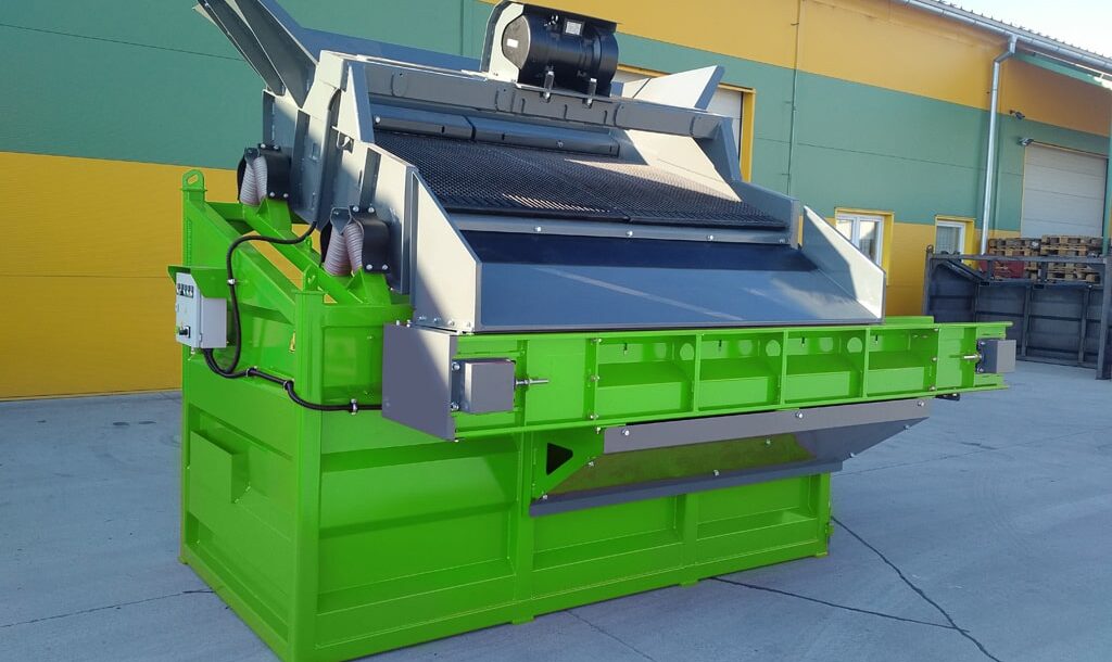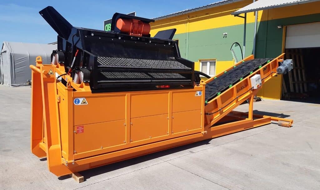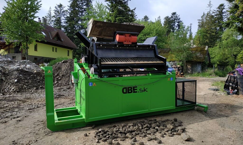 Posibilidad de cambiar el tamaño de las fracciones resultantes en cualquier lugar, rápida y fácilmente gracias a tamices duraderos, arbitrariamente de 4 mm a 80 mm. El accionamiento es proporcionado por un motor eléctrico vibrante.