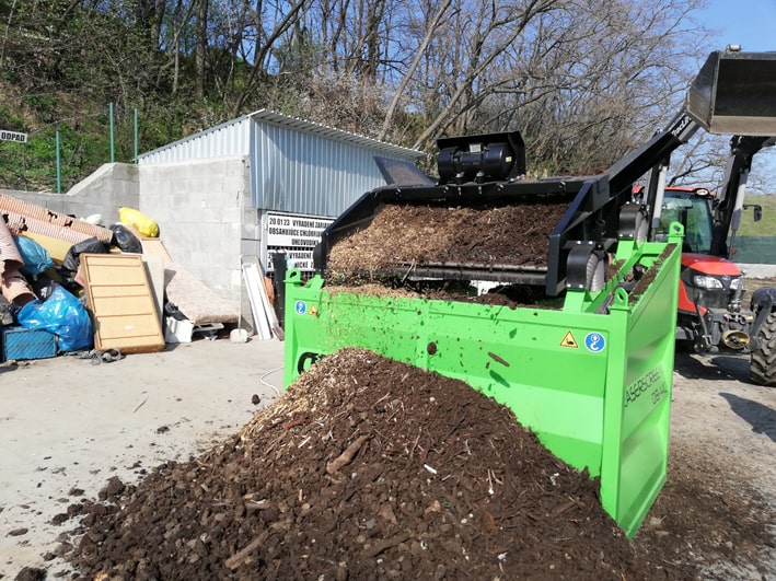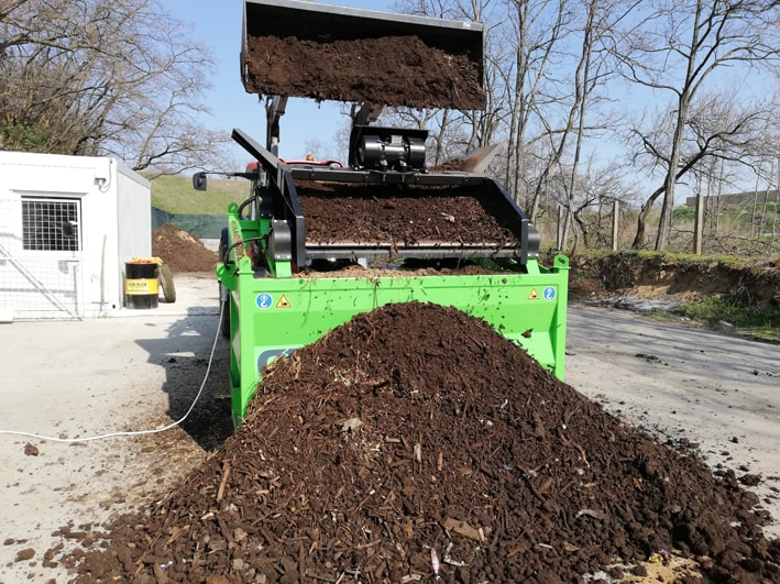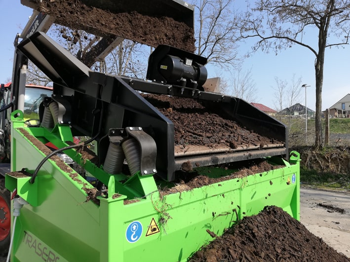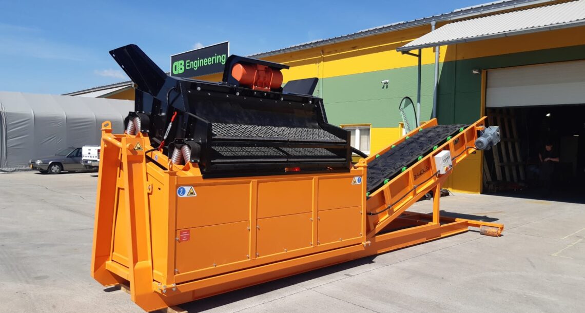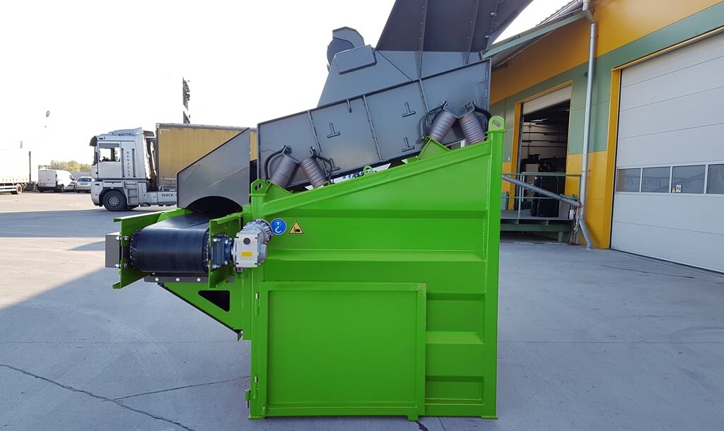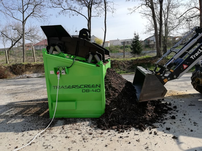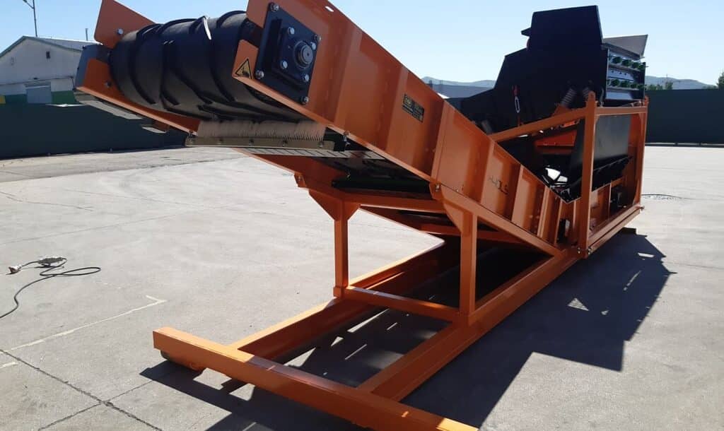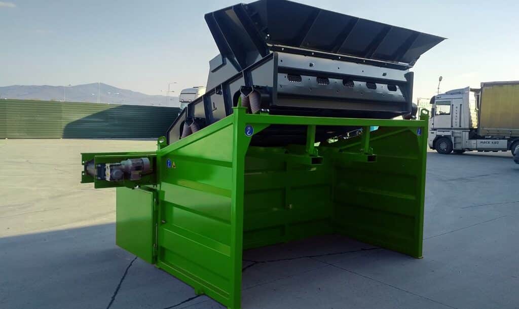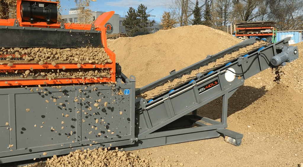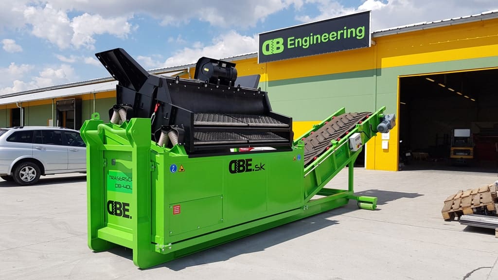 Posibilidad de cambiar el tamaño de las fracciones resultantes en cualquier lugar, rápida y fácilmente gracias a tamices duraderos, arbitrariamente de 4 mm a 80 mm. El accionamiento es proporcionado por un motor eléctrico vibrante.